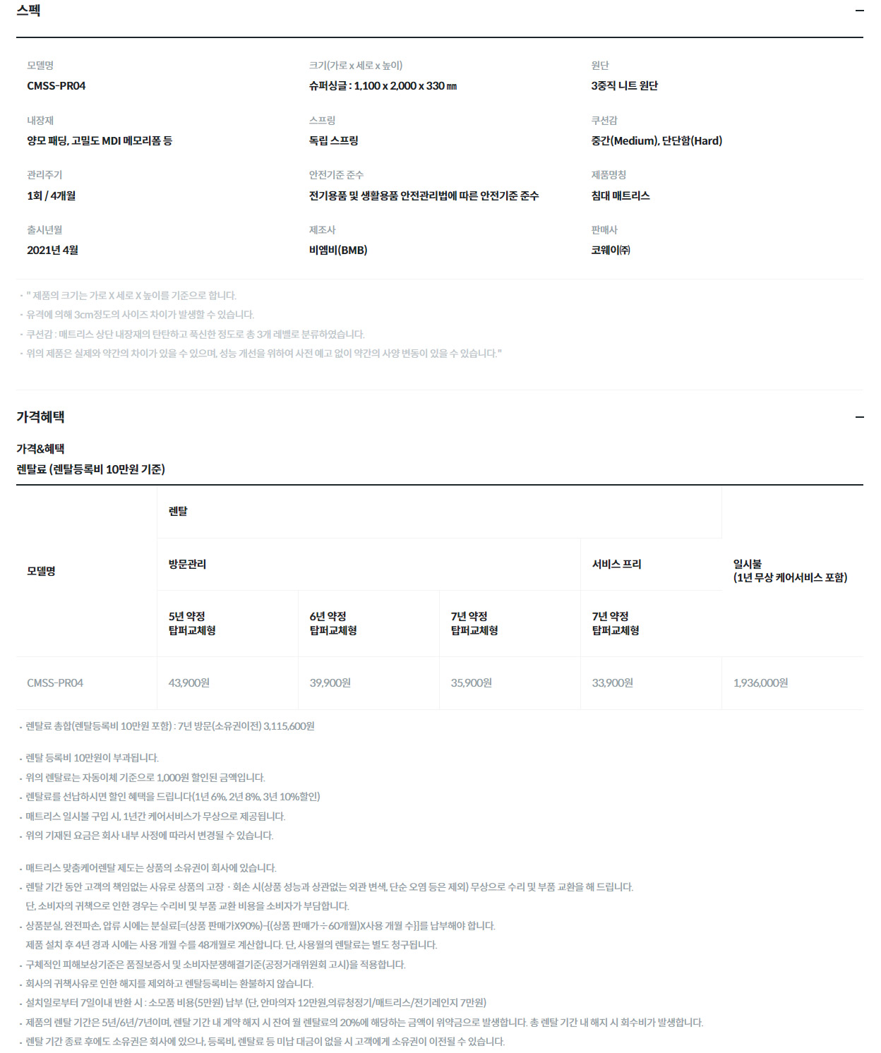 코웨이 탑퍼교체 하이브리드4 매트리스 (SS)