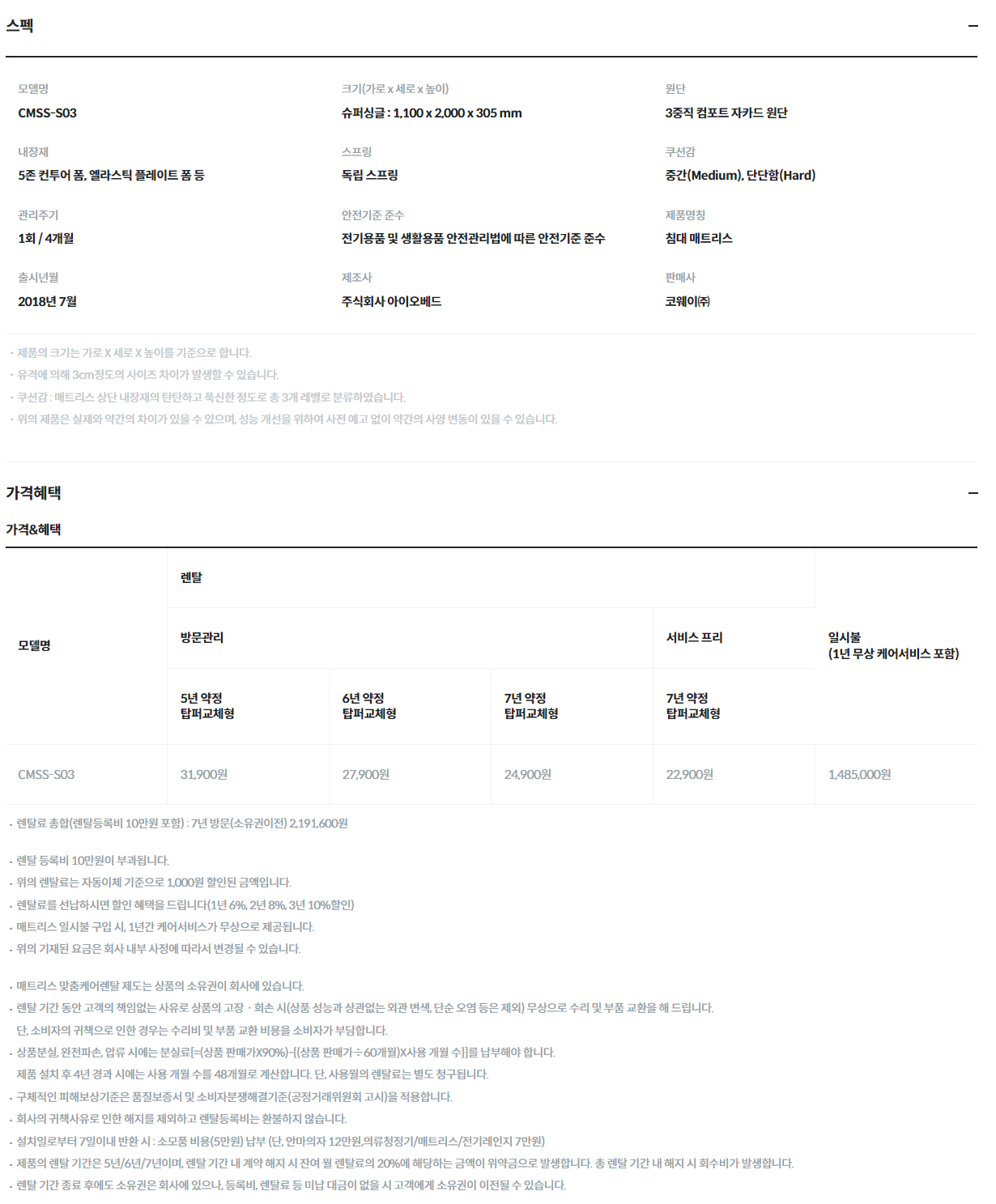 코웨이 비렉스 탑퍼교체 프라임 매트리스 (SS)