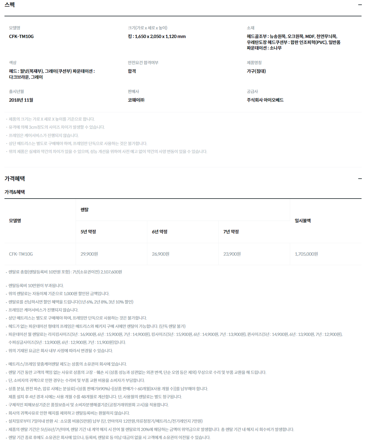 코웨이 투매트리스 프레임 쿠션헤드 (K)