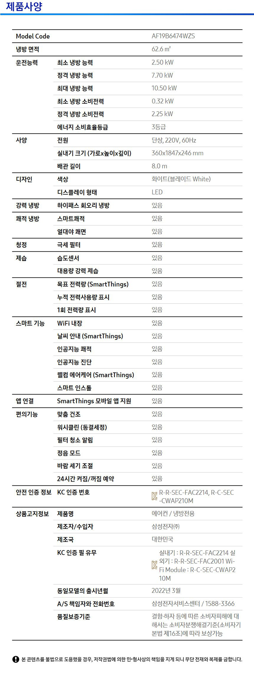 삼성전자 비스포크 무풍 클래식 19평형 에어컨