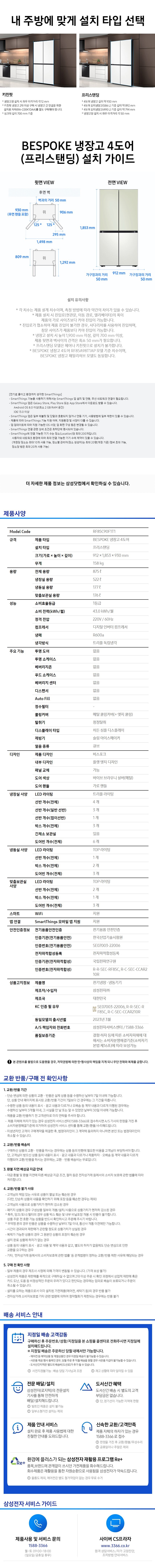 현대큐밍 삼성전자 비스포크 4도어 875L 냉장고