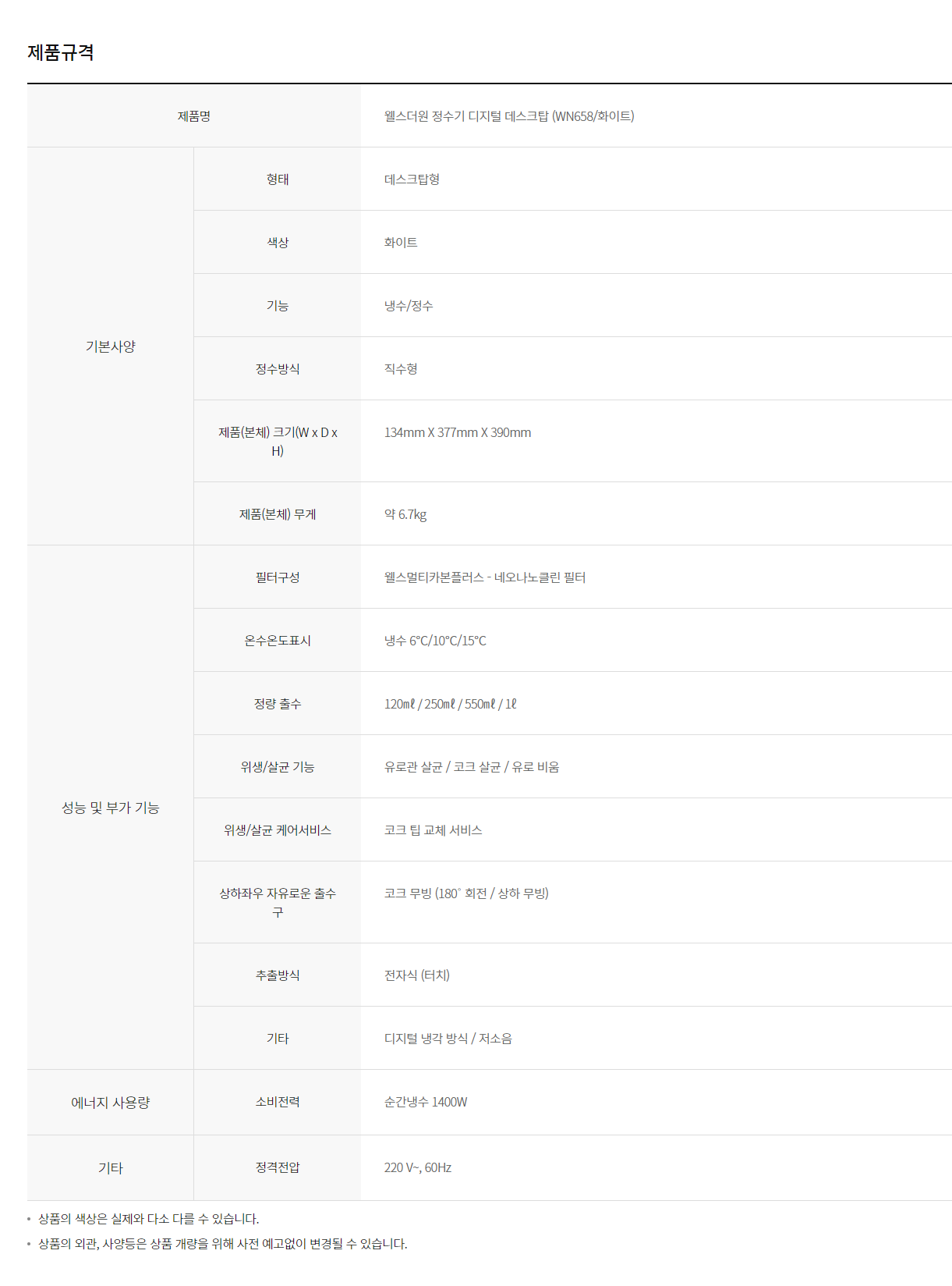 웰스 더원 디지털 데스크탑 냉정수기 (6개월 방문관리)