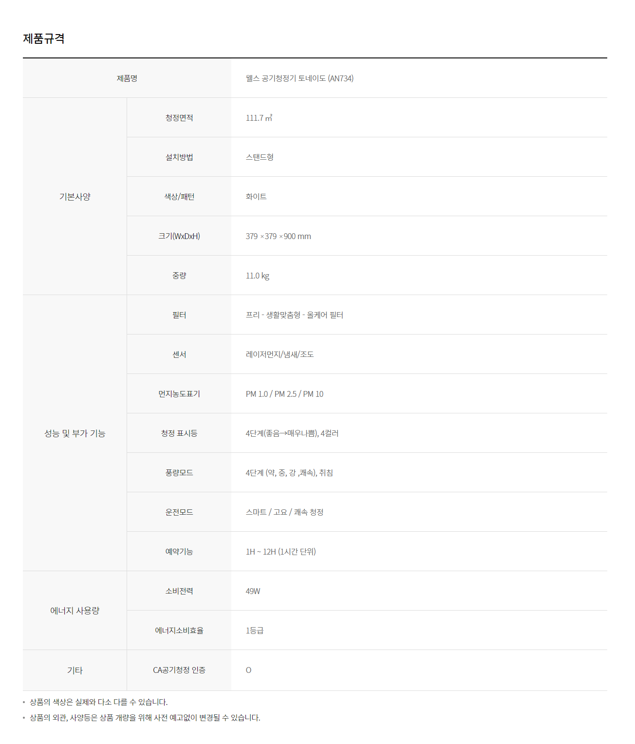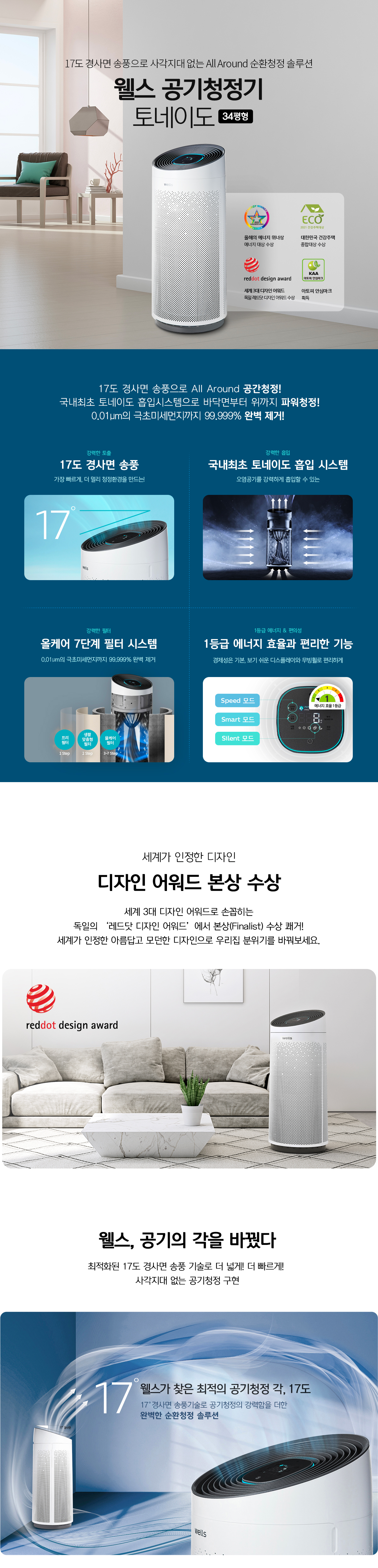 웰스 토네이도 34평형 공기청정기 (6개월 방문관리)
