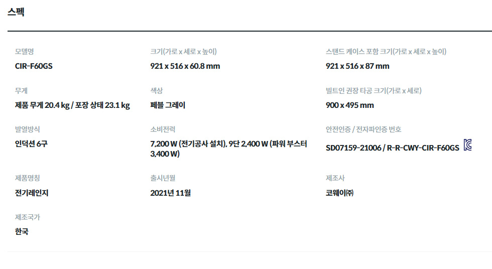 코웨이 노블 인덕션 100프로 All-Free 900mm 와이드 (전기공사형/서비스프리)