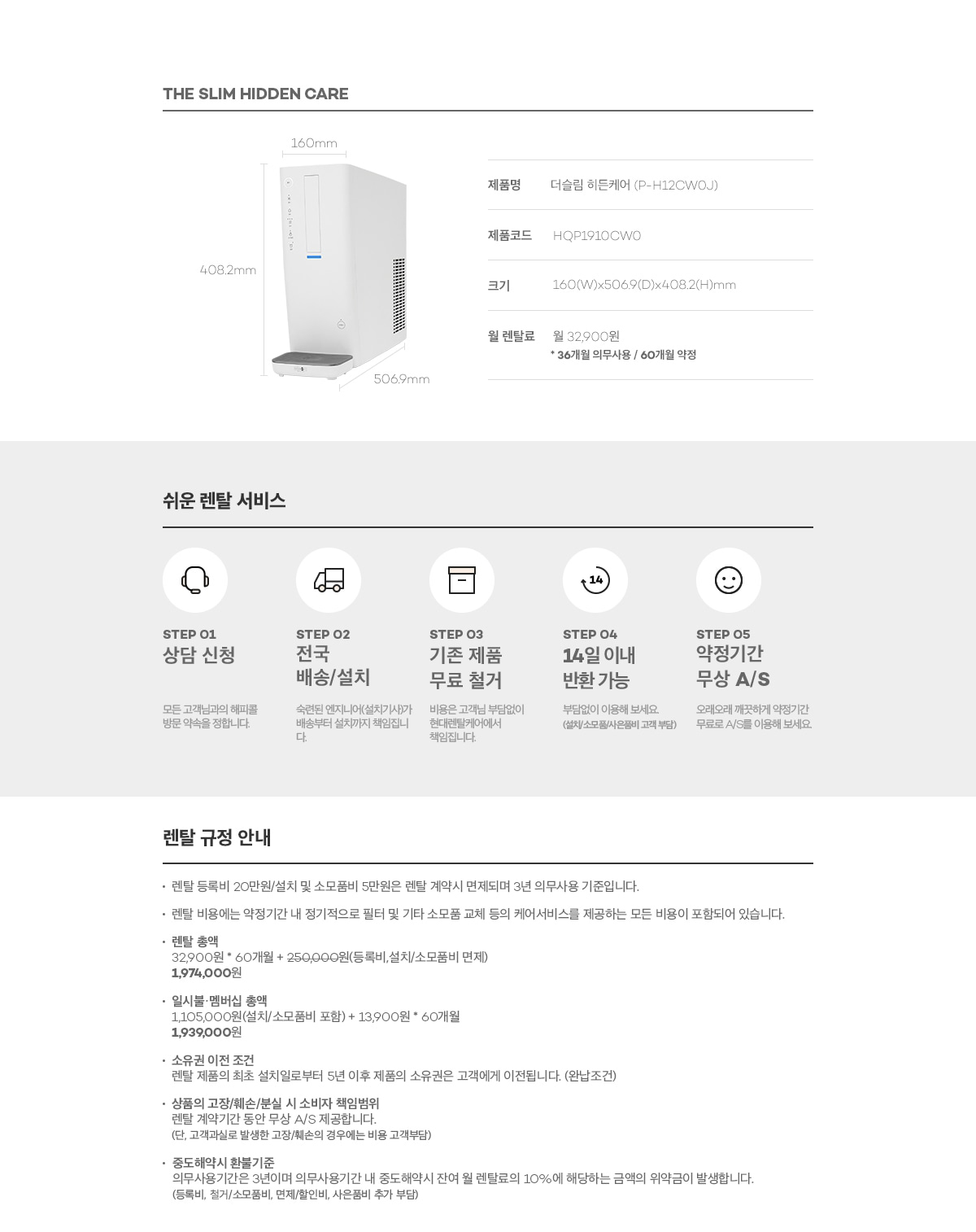 현대큐밍 더슬림 히든케어 냉온정수기 (4개월 방문관리)