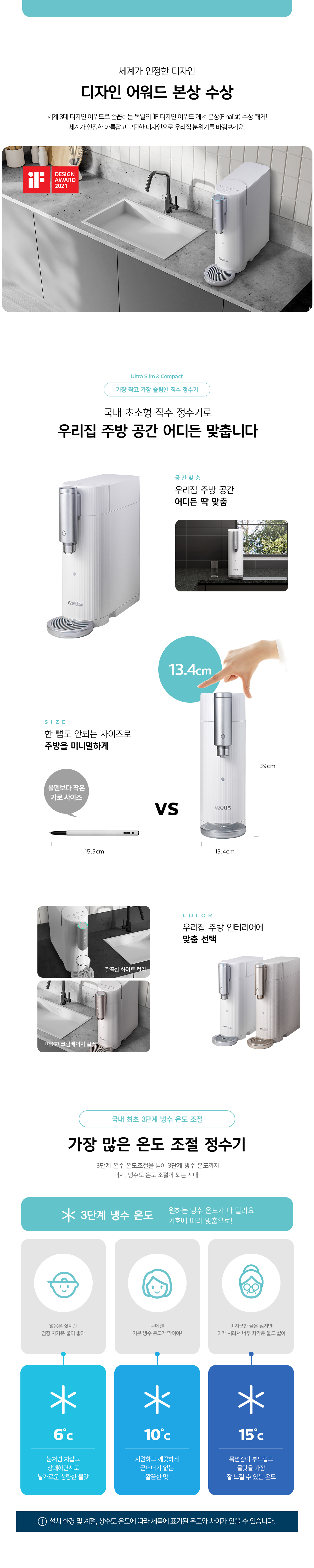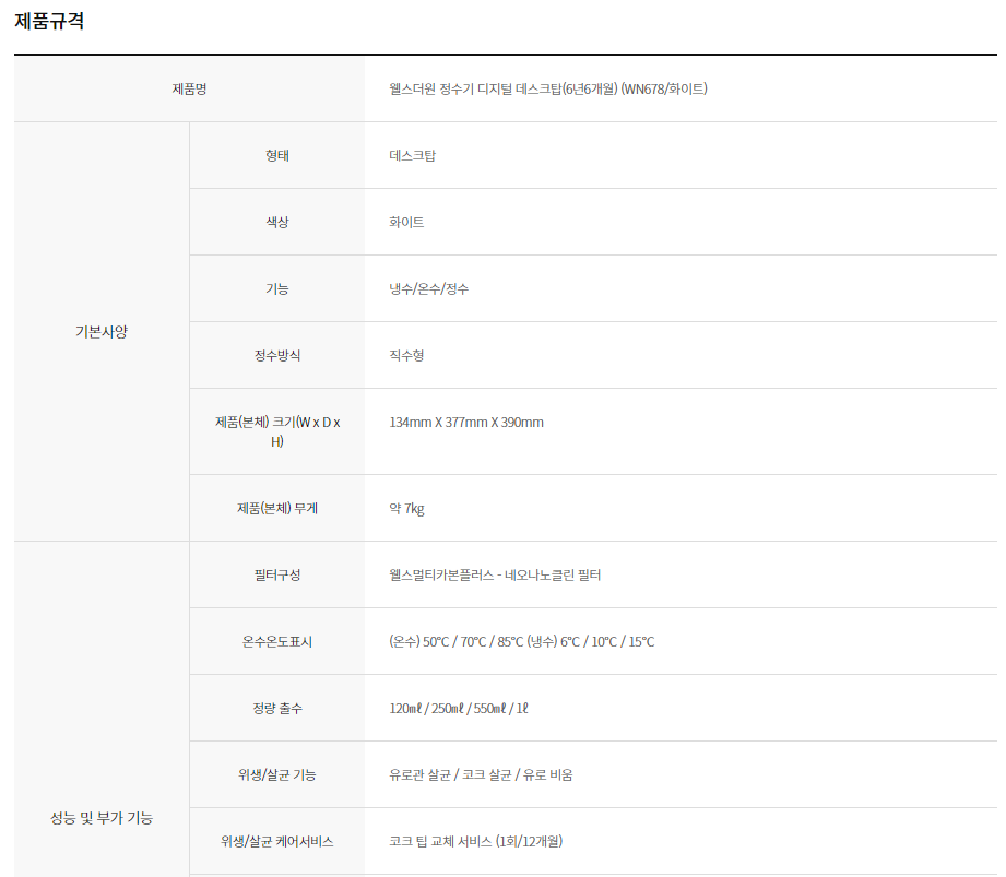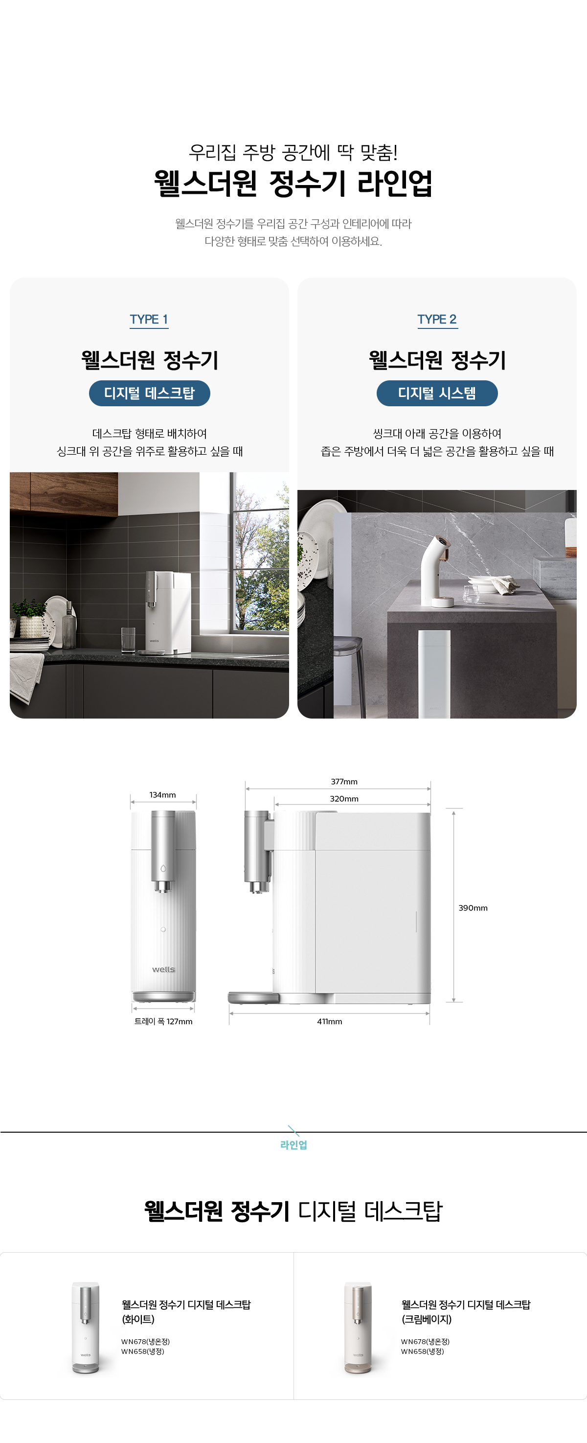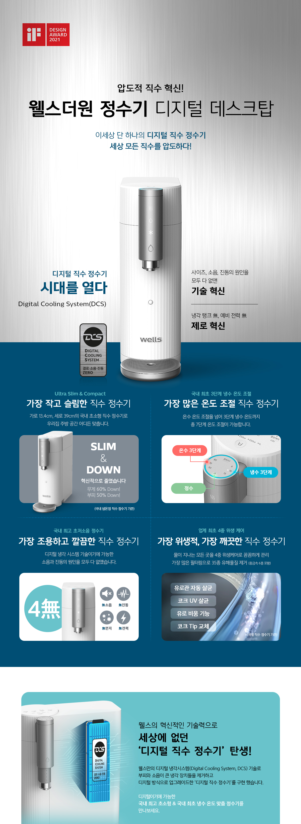 웰스 더원 디지털 데스크탑 냉온정수기 (자가관리)