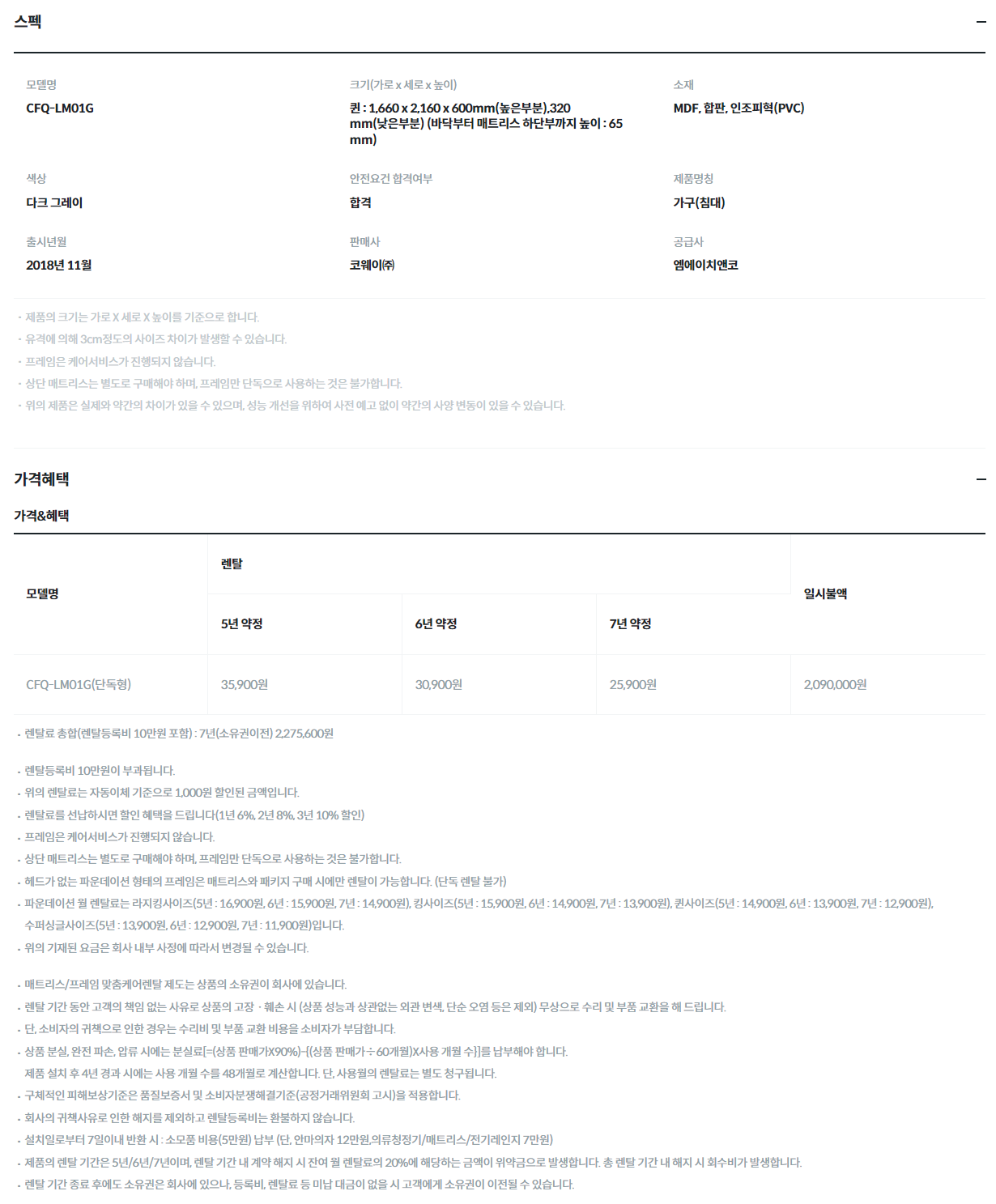 코웨이 단매트리스 패밀리 저상형프레임(Q)