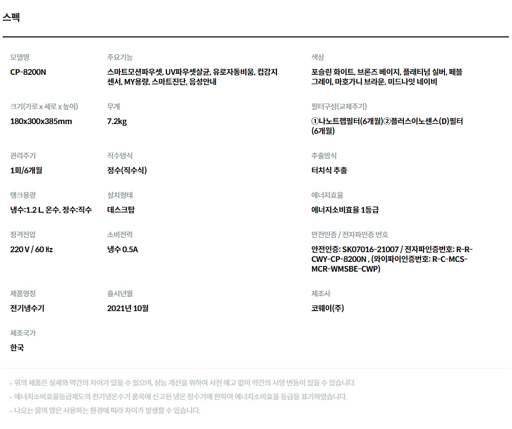 정수기 (375) 냉온정수기 (229) 얼음정수기 (52) 기타 (0) 일반정수기 (32) 냉정수기 (62)