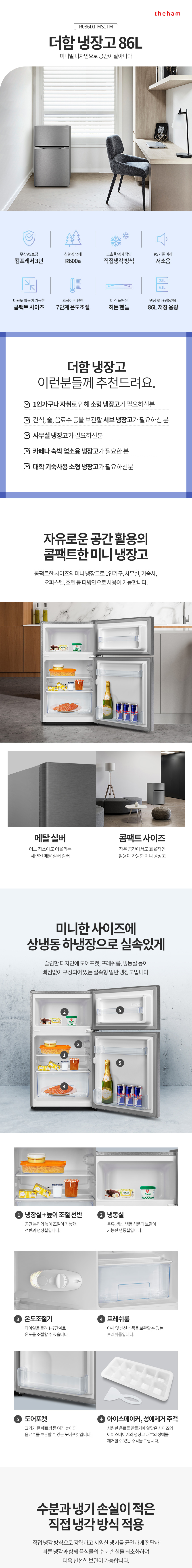 더함 86L 소형 일반 미니 2도어 냉장고