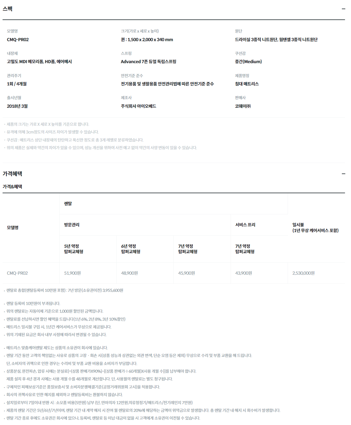 코웨이 비렉스 탑퍼교체 하이브리드2 매트리스 (Q)