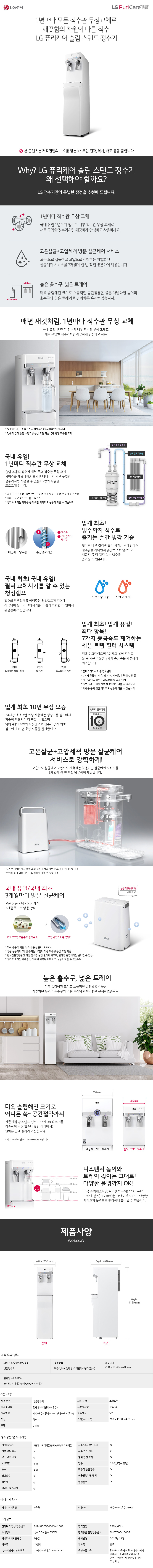 LG전자 퓨리케어 슬림 스탠드 냉온정수기 (3개월 방문관리)