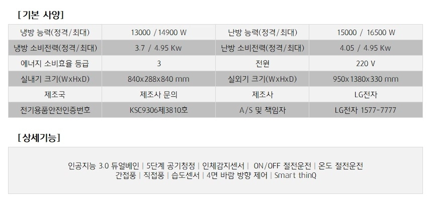 LG전자 인버터 천장형 4WAY 36평형 냉난방기 (단상)