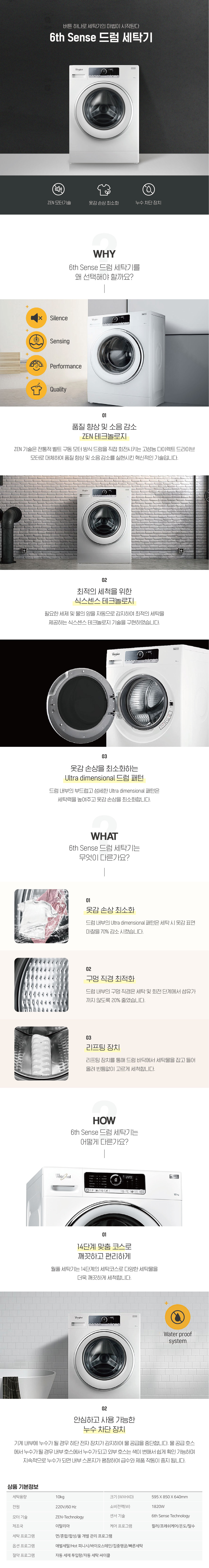 월풀 6th Sense 10kg 드럼 세탁기