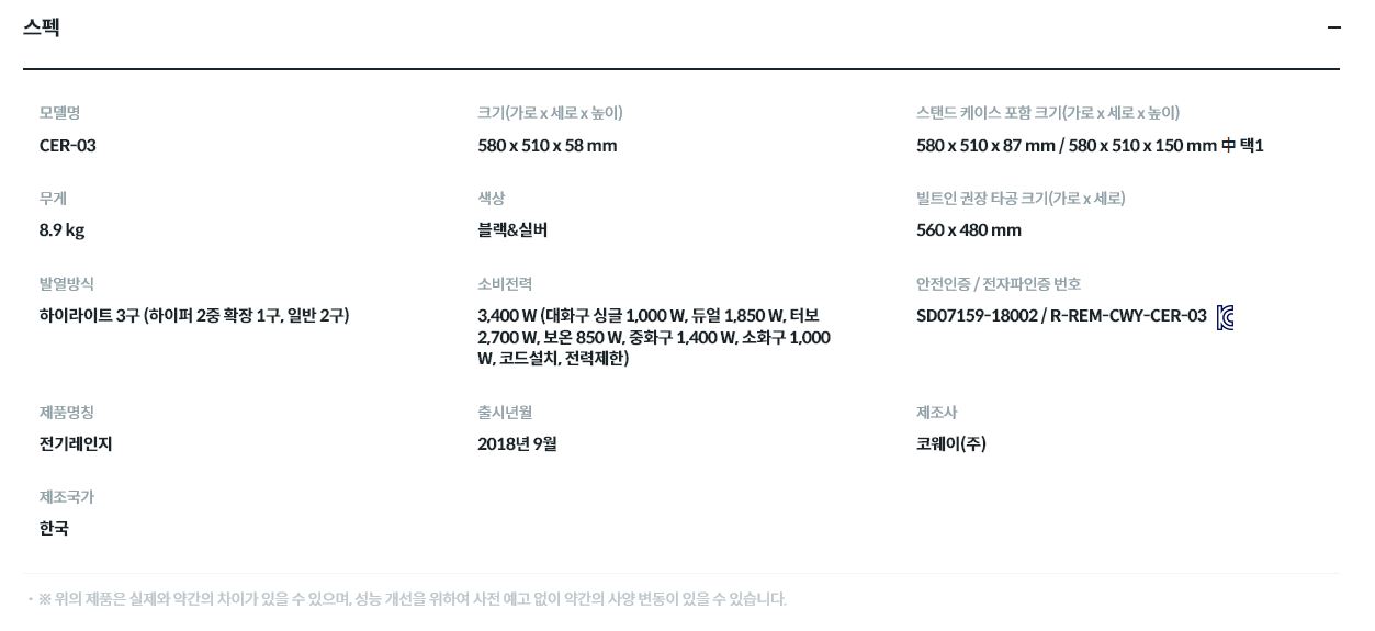 코웨이 하이퍼 하이라이트 3구 전기레인지 (방문관리)