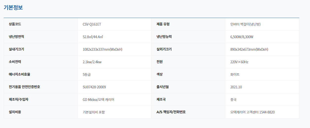 캐리어 인버터 벽걸이 16평형 냉난방기 (케어서비스 1회)