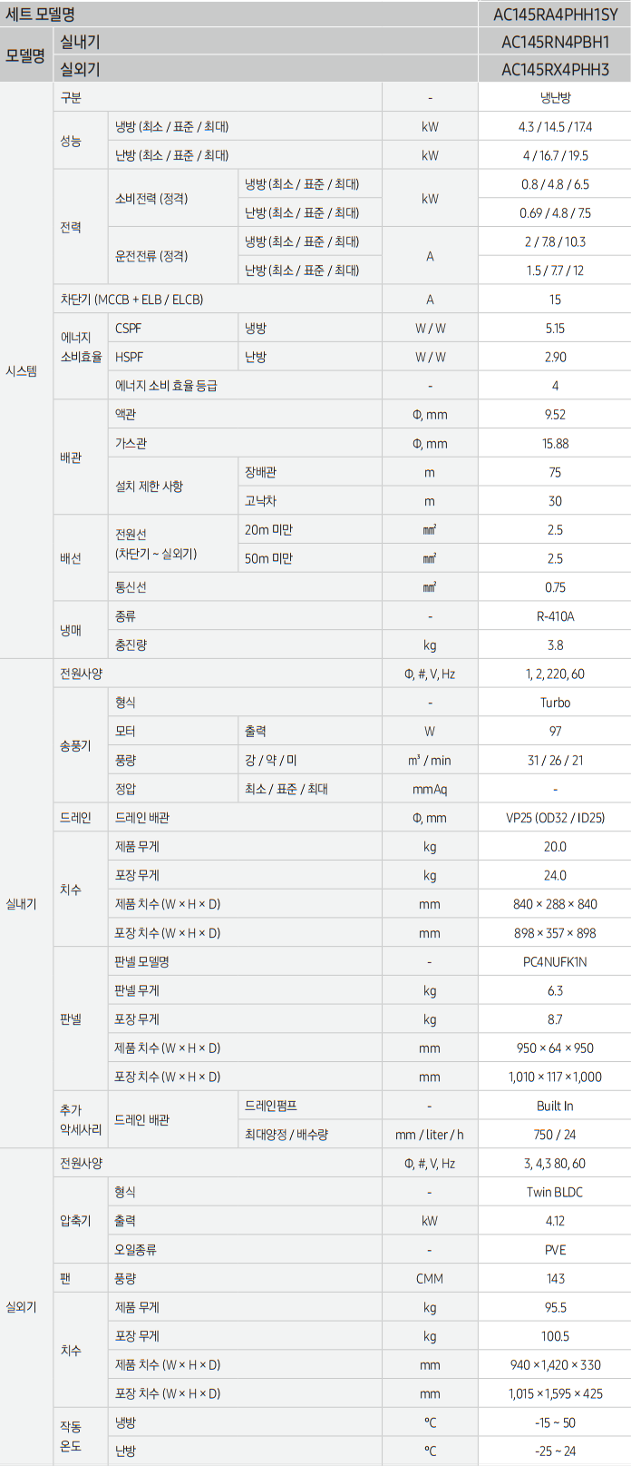 삼성전자 천장형 4WAY 40평형 냉난방기 (삼상)
