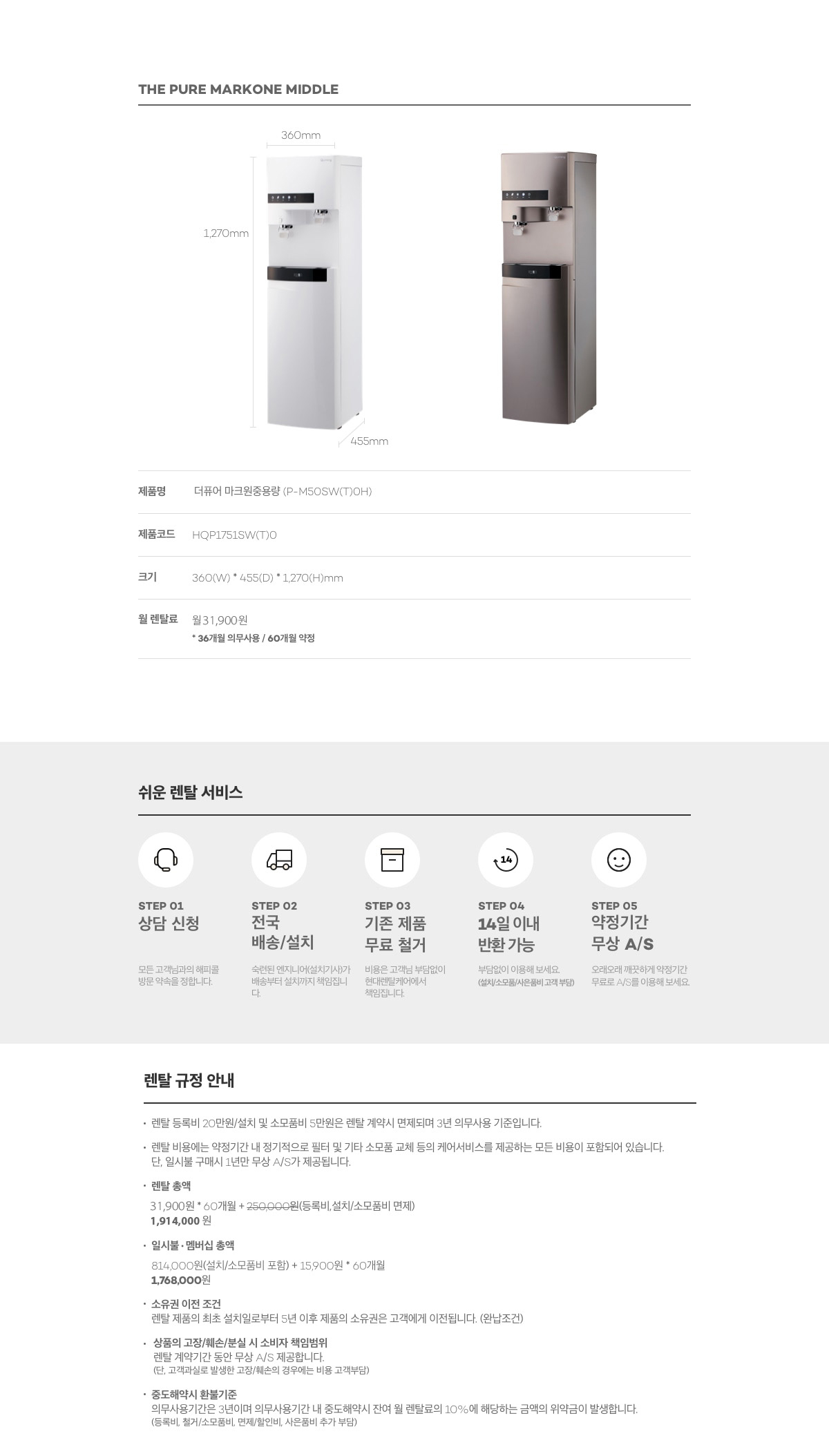 현대큐밍 더퓨어 마크원 중용량 냉온정수기 (4개월 방문관리)