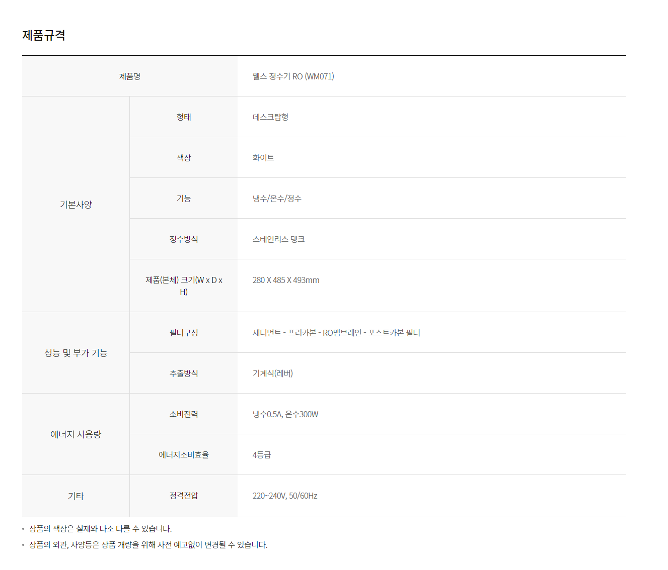 정수기 (375) 냉온정수기 (229) 얼음정수기 (52) 기타 (0) 일반정수기 (32) 냉정수기 (62)