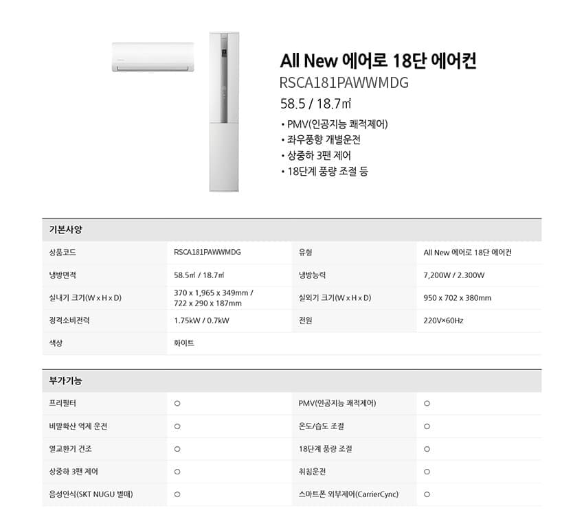 캐리어 올뉴에어로 α 고급형 18+6평형 냉방기 에어컨