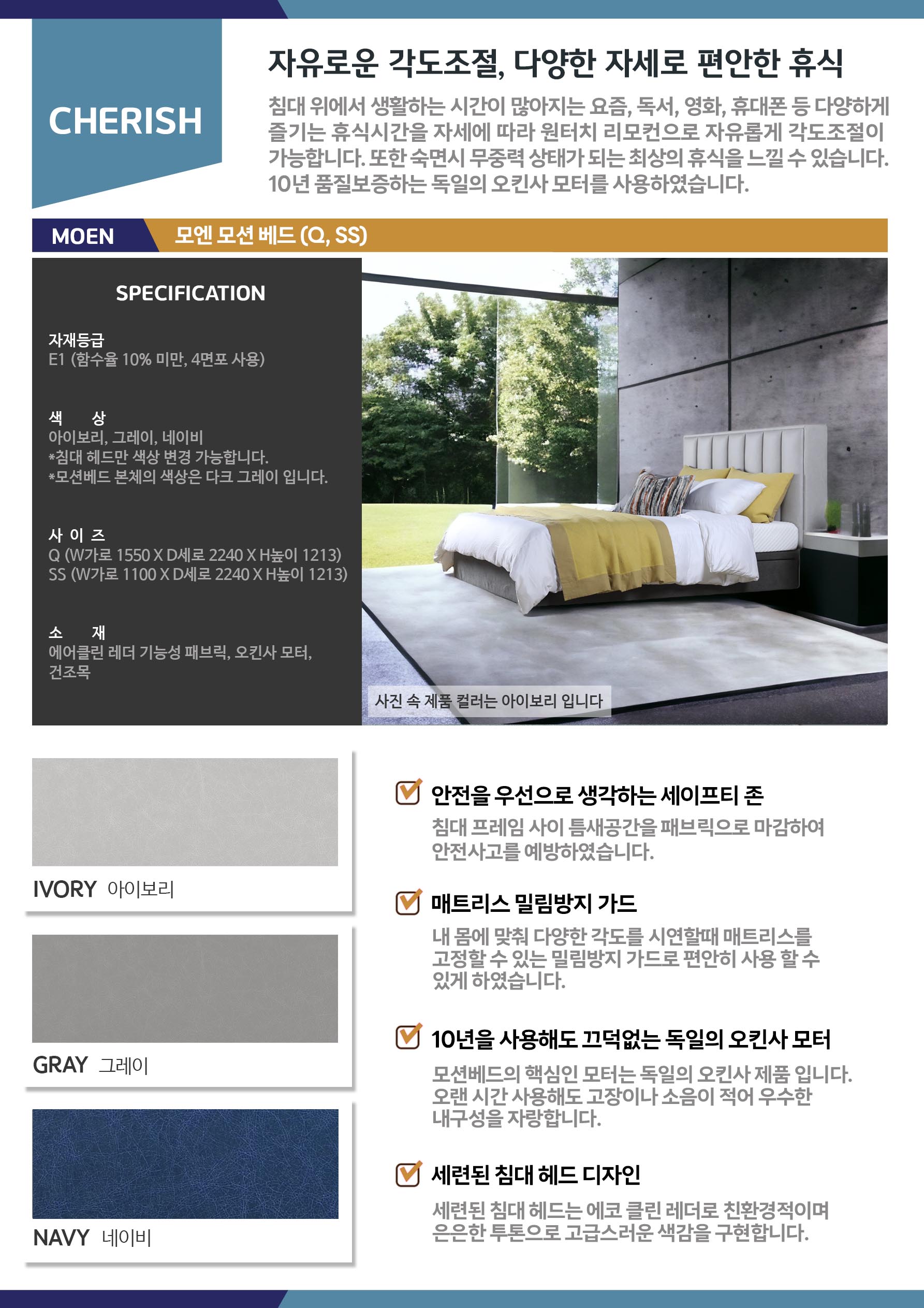 [보람상조] 트리플 체리쉬 그레이 퀸사이즈 모션베드