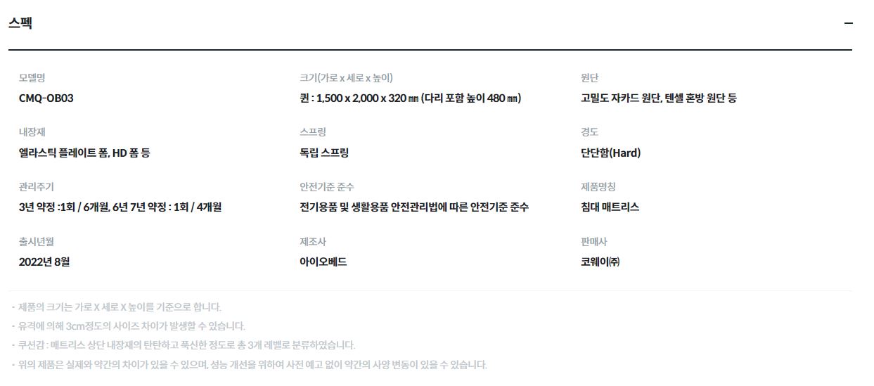 코웨이 비렉스 커버교체 원바디 2 매트리스 (SS)