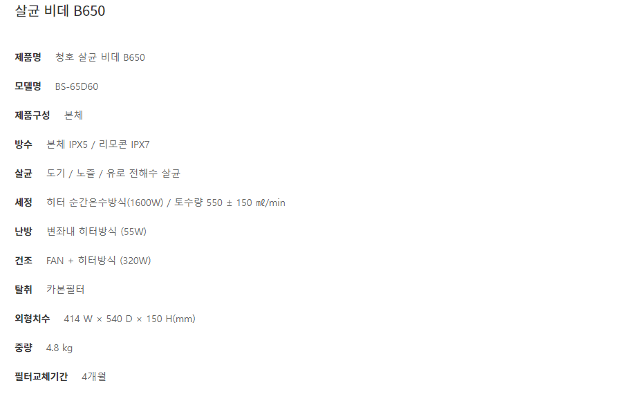 청호나이스 B650 살균 비데 (4개월 방문관리)