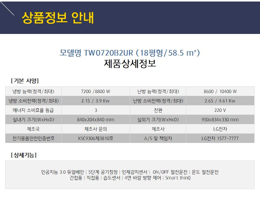 LG전자 인버터 천장형 4way 18평형 냉난방기 (단상)