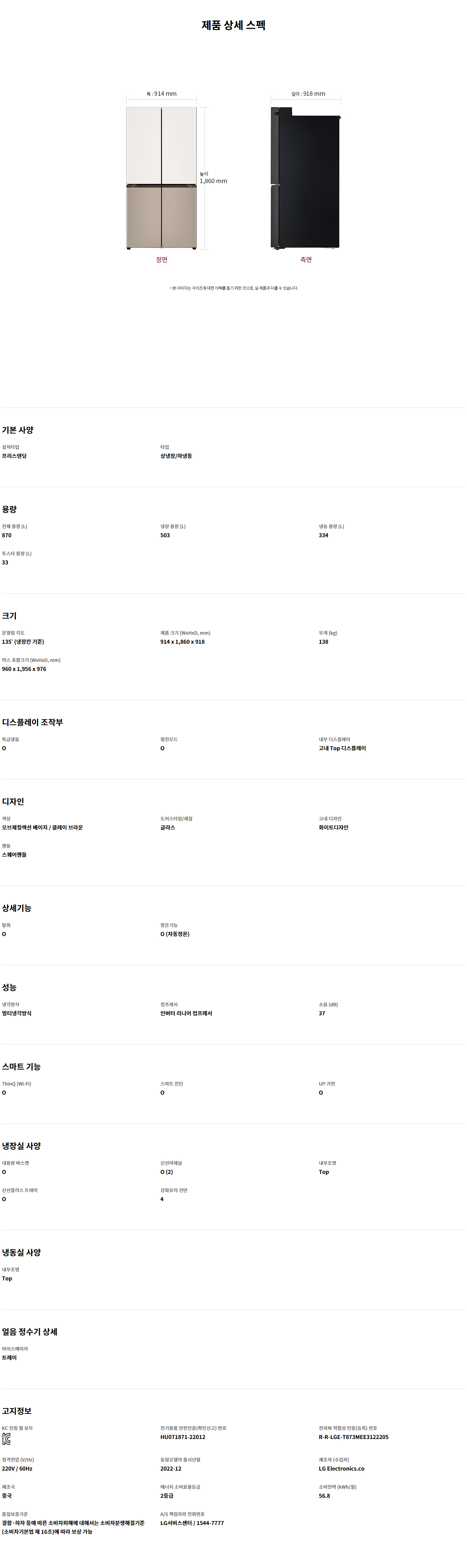 LG전자 디오스 오브제컬렉션 870L 베이직 냉장고