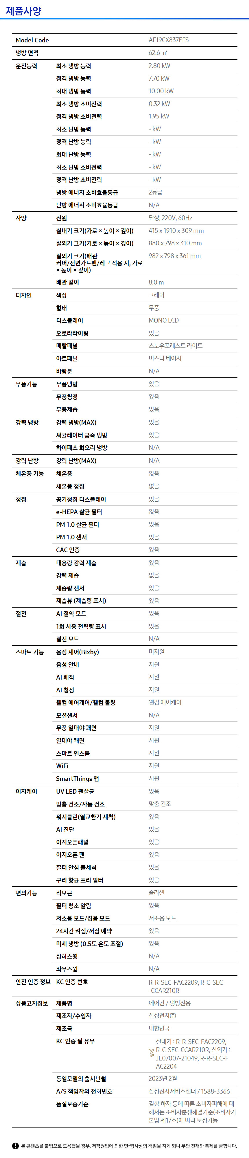 삼성전자 BESPOKE 무풍 갤러리 청정 스탠드형 19평형 에어컨