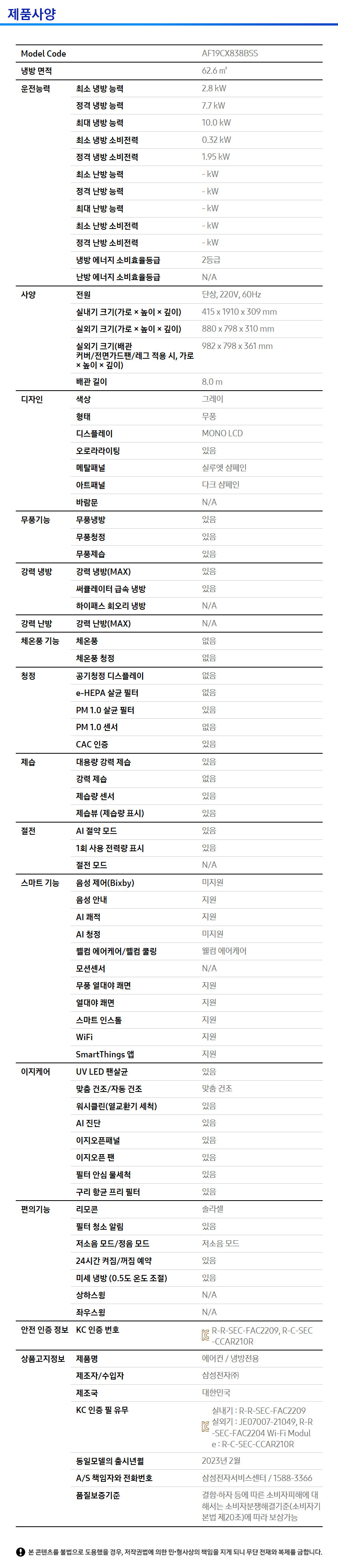 삼성전자 BESPOKE 무풍 갤러리 청정 스탠드형 19평형 에어컨 (매입)