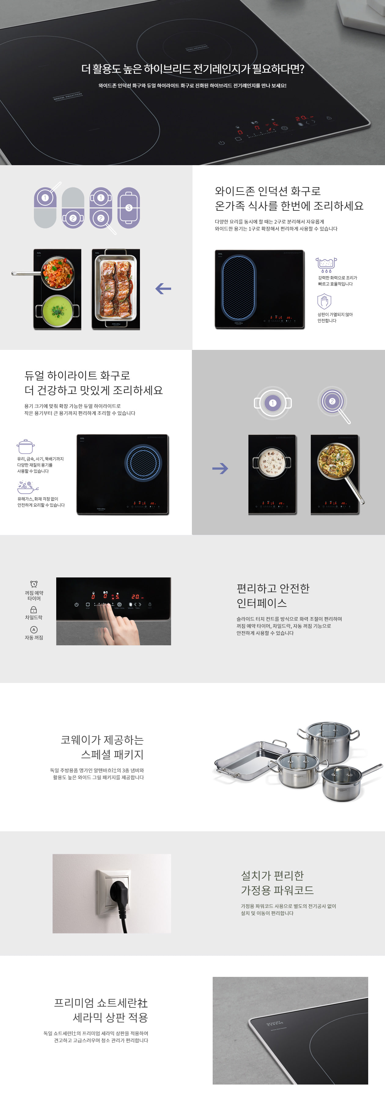코웨이 하이브리드 인덕션 2구+하이라이트 1구 전기레인지 (서비스프리)