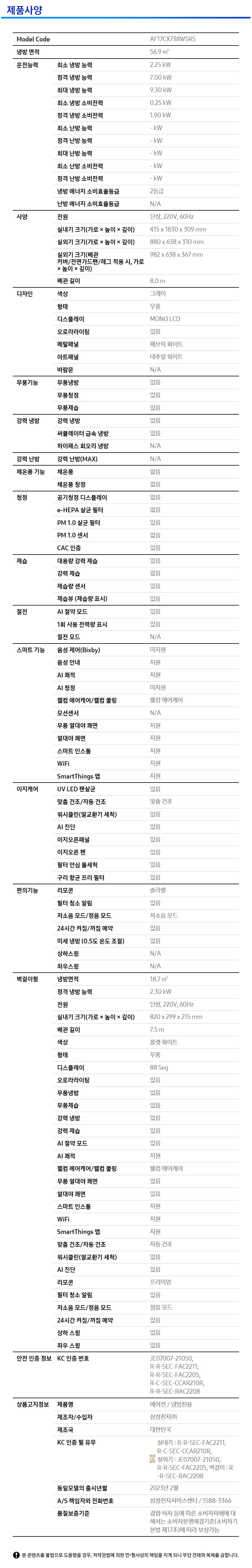 삼성전자 BESPOKE 무풍 갤러리 2in1 17+6평형 에어컨