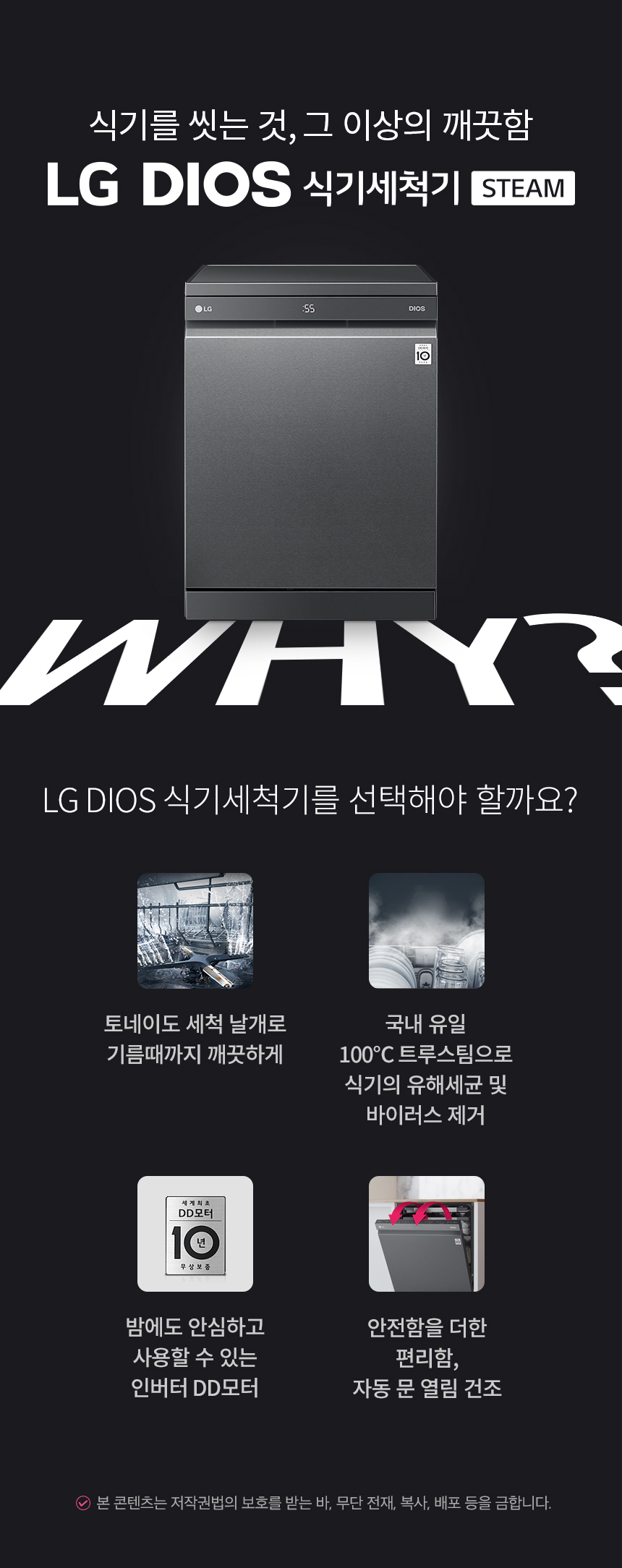 LG전자 디오스 스팀 12인용 프리스탠딩 식기세척기 (자가관리)