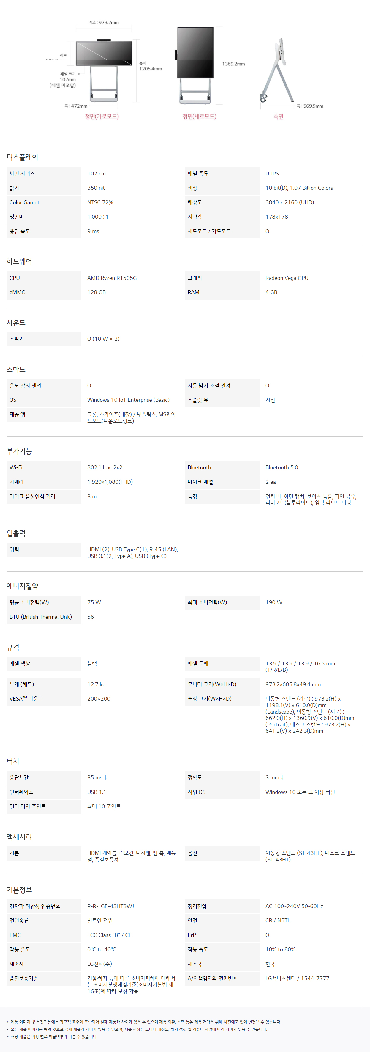LG전자 원퀵 43인치 스탠드/벽걸이