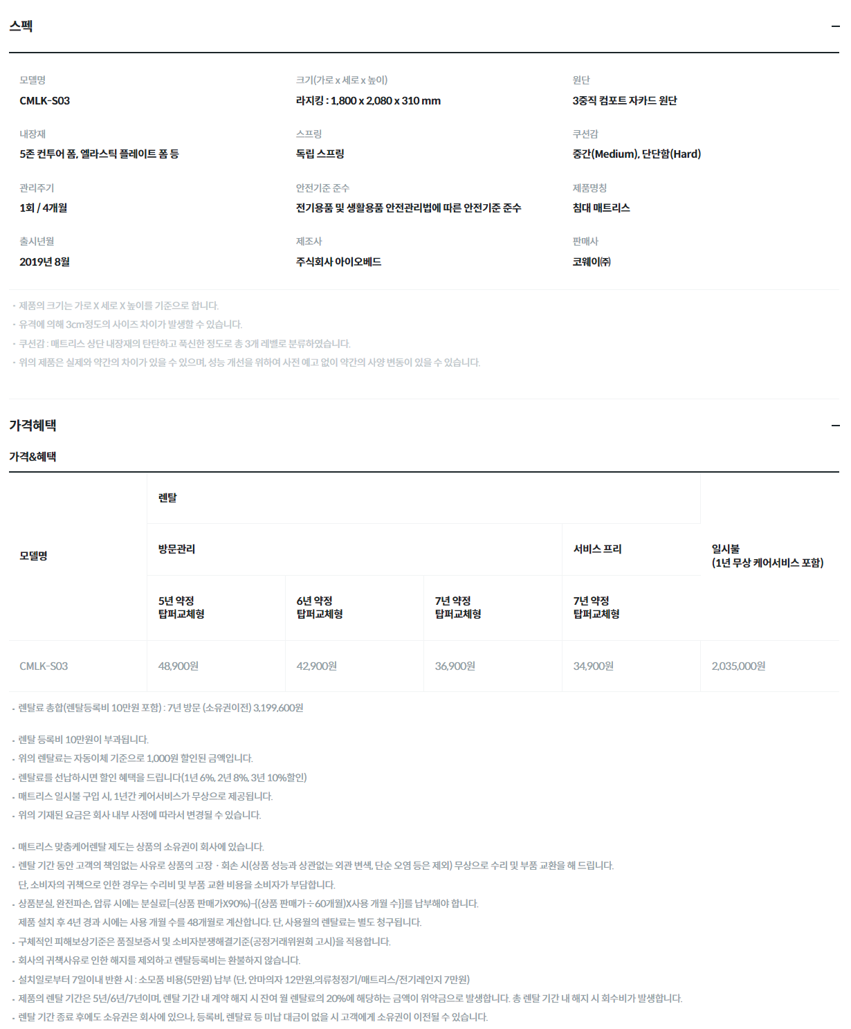코웨이 비렉스 탑퍼교체 프라임 매트리스 (LK)