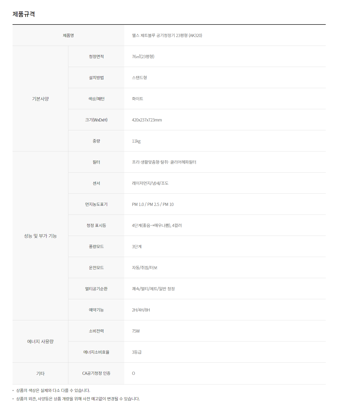 웰스 제트블루 23평형 공기청정기 (2개월 방문관리)
