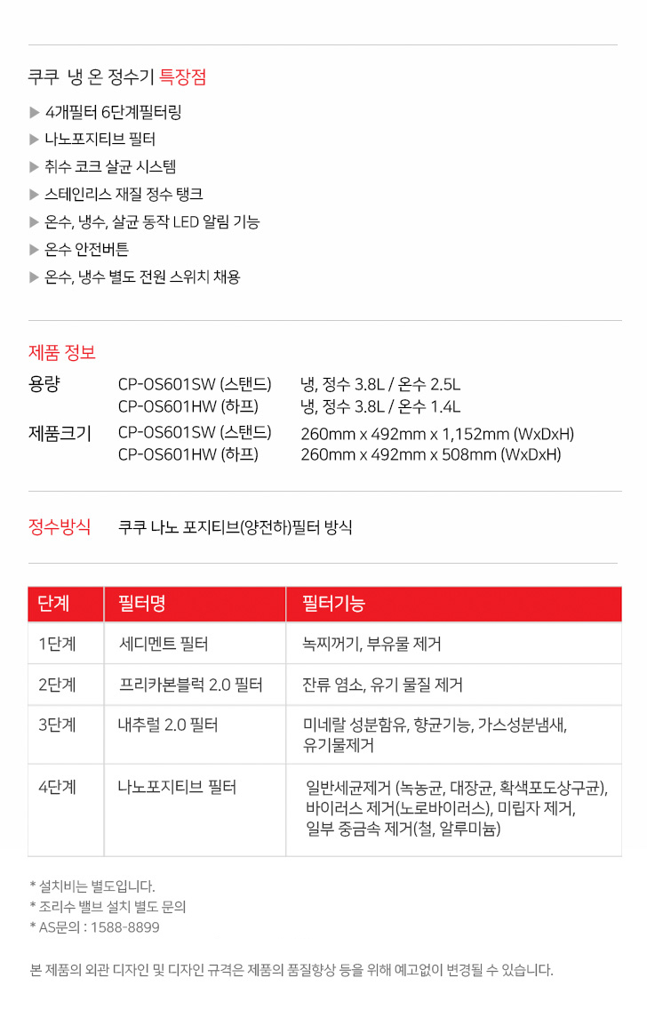 쿠쿠 인앤아웃 스탠드형 냉온정수기 (4개월 방문관리)