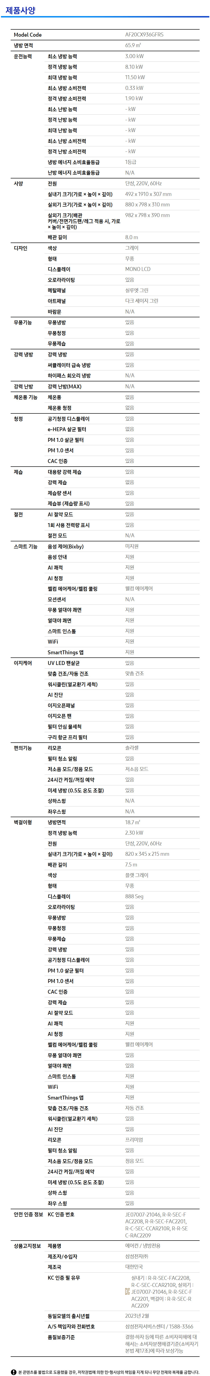 삼성전자 BESPOKE 무풍 갤러리 2in1 20+6평형 에어컨 (매립)