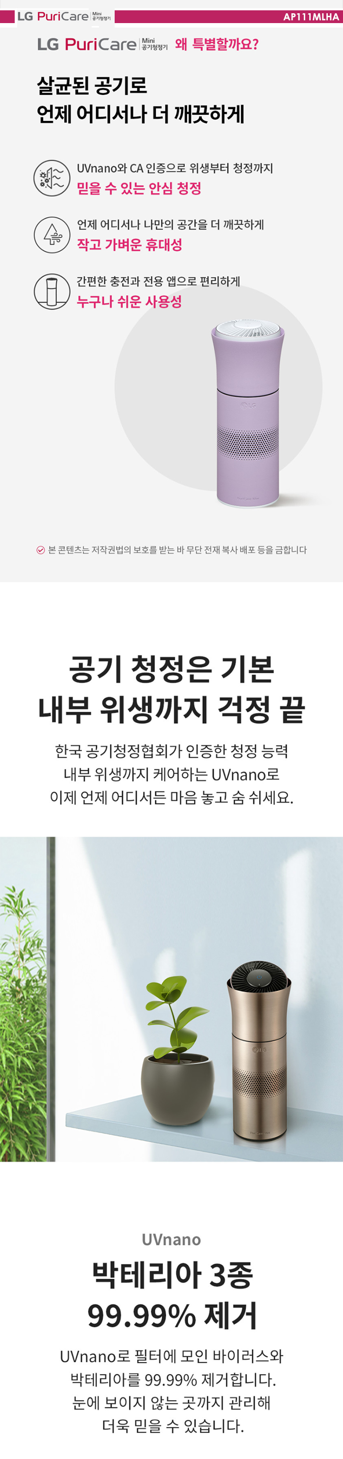 LG전자 퓨리케어 휴대용 미니 공기청정기