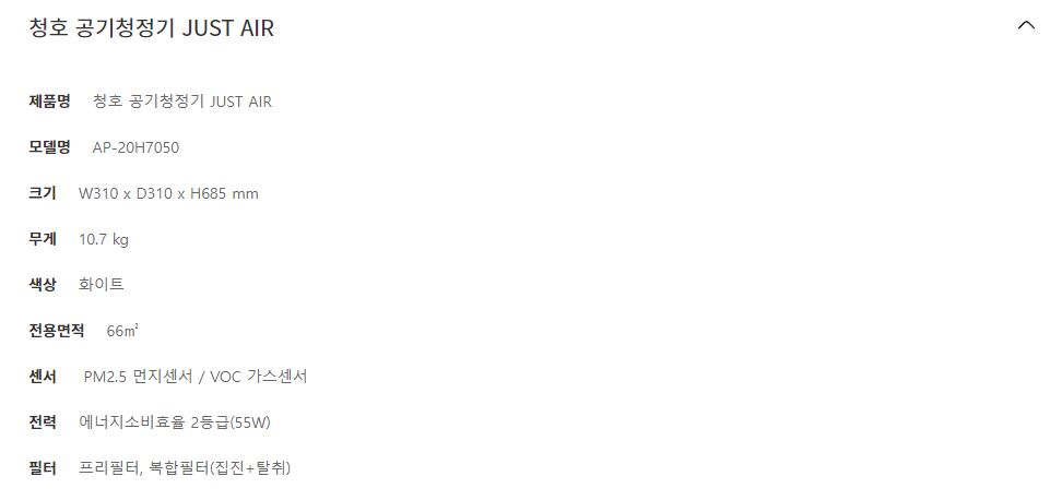 청호나이스 저스트에어 20평형 공기청정기 (12개월 방문관리)