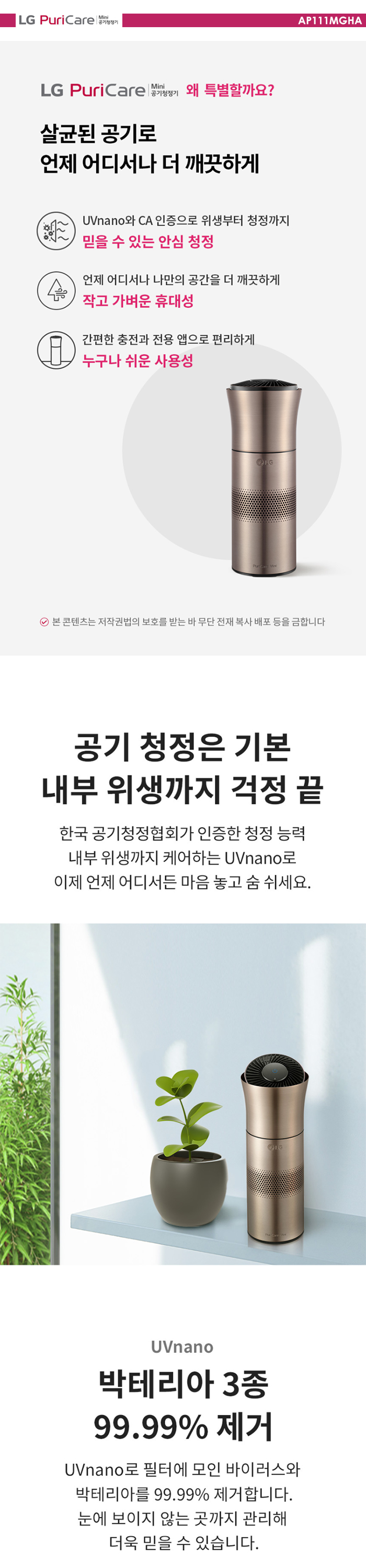 LG전자 퓨리케어 휴대용 미니 공기청정기
