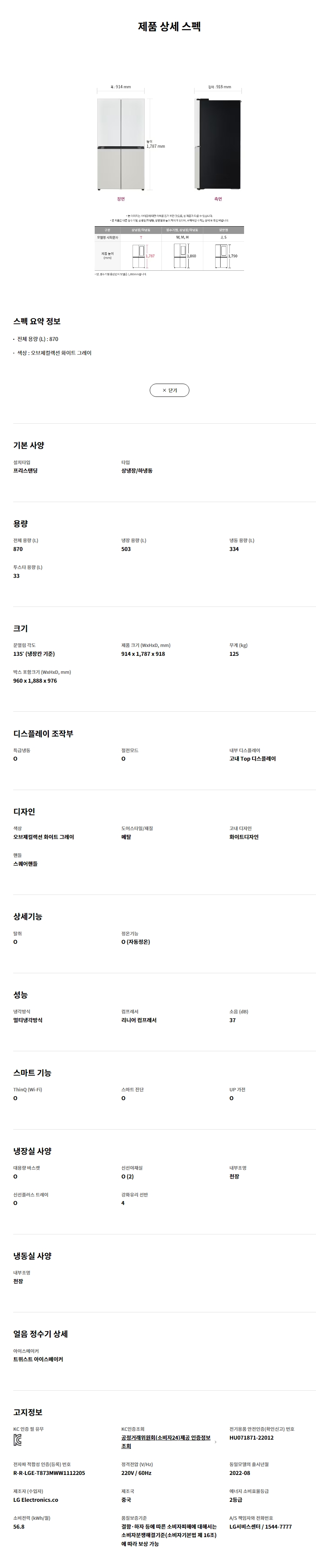 [교원라이프] LG전자 디오스 오브제컬렉션 베이직 870L 냉장고