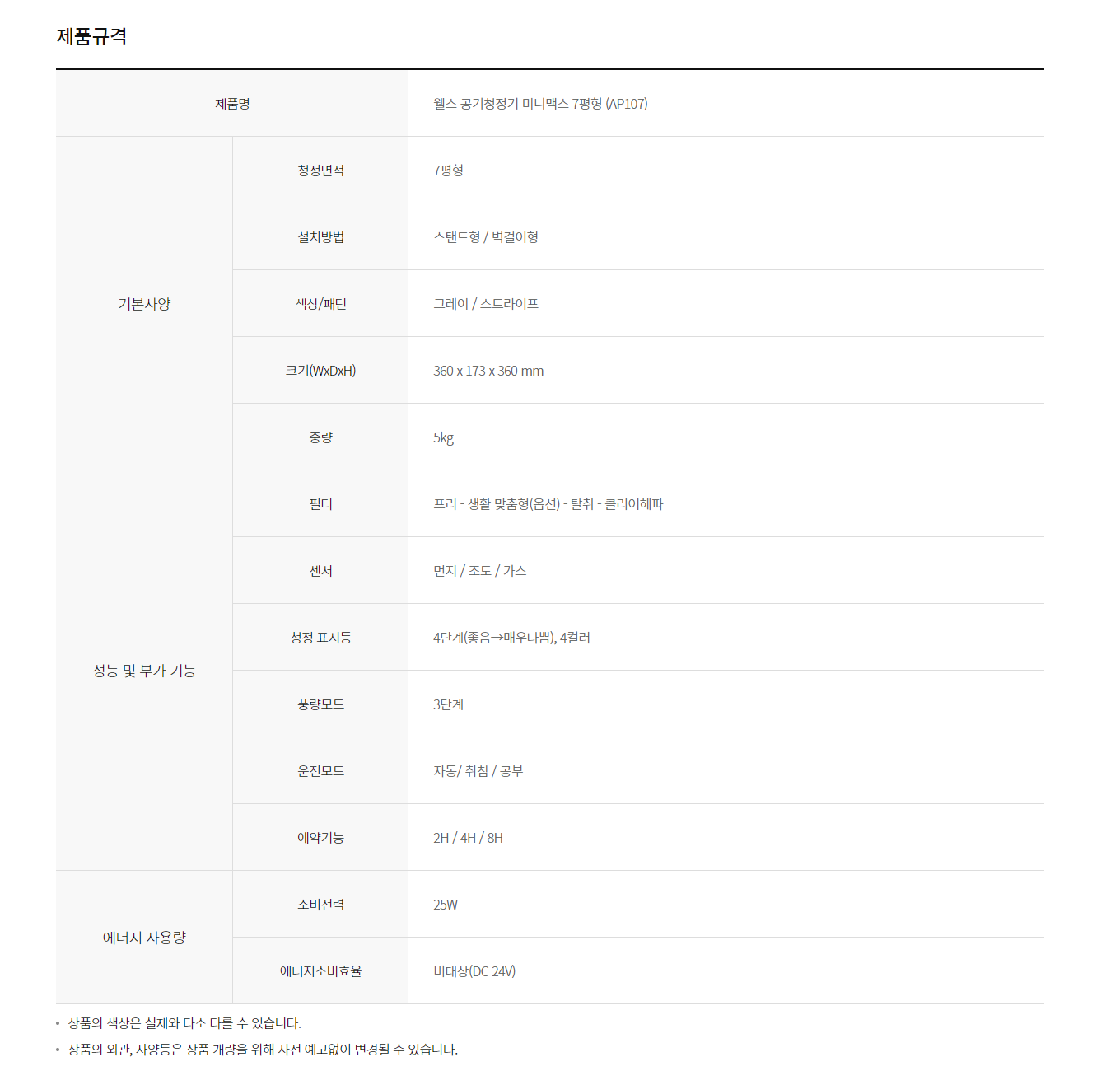 웰스 미니맥스 7평형 공기청정기 (6개월 방문관리)