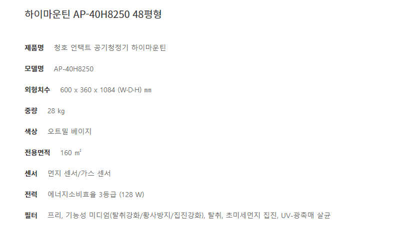 청호나이스 언택트 하이마운틴 48평형 공기청정기 (2개월 방문관리)